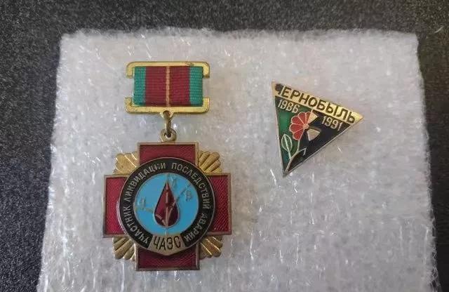 为在切尔诺贝利工作的人制作的徽章(左)和为 1991 年他们的第一个五年聚会制作的身材针(右)✿◈◈◈。