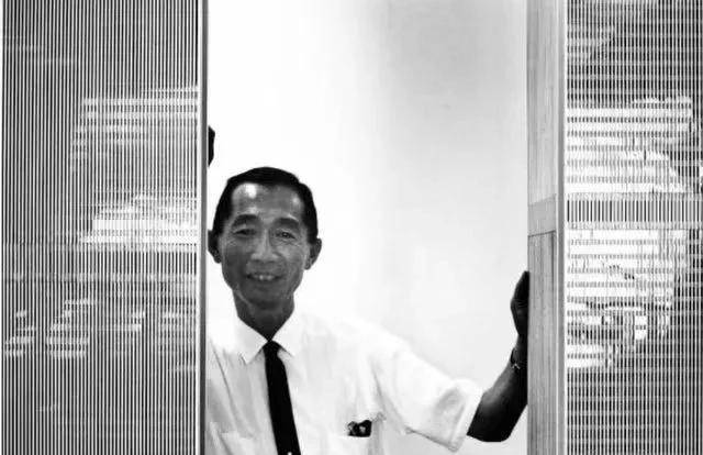 日裔国外建筑师山崎实✿◈◈◈,在双子塔模型旁摆姿势✿◈◈◈。他以 1960 年代的原世贸中心设计而闻名✿◈◈◈。